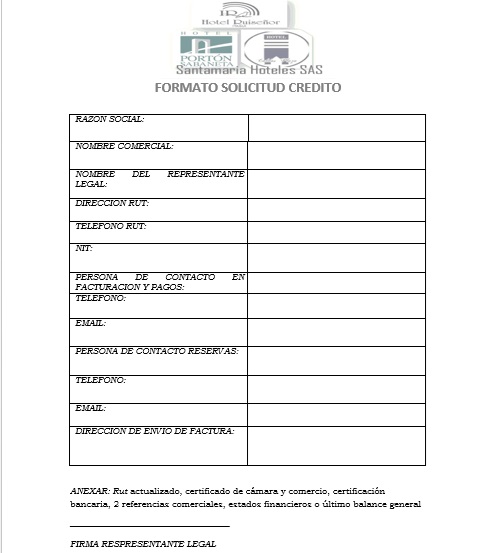 Este es el Formato para las empresas que desean abrir crédito en nuestros Hoteles