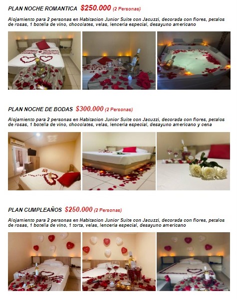 Disfruta de nuestros Planes en Pareja Hotel Playa Sur Itagui manejamos Plan Noche Romantica Plan Noche de Bodas y Plan Cumpleaños